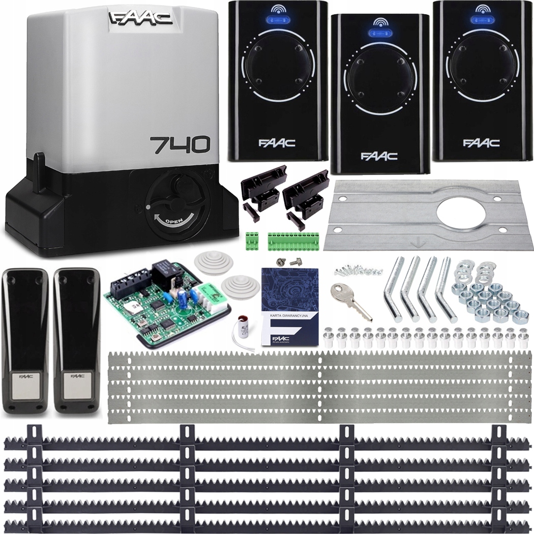 - Zestaw do bram przesuwnych FAAC DELTA 2 - 740, 3x pilot, 5x listwa zębata