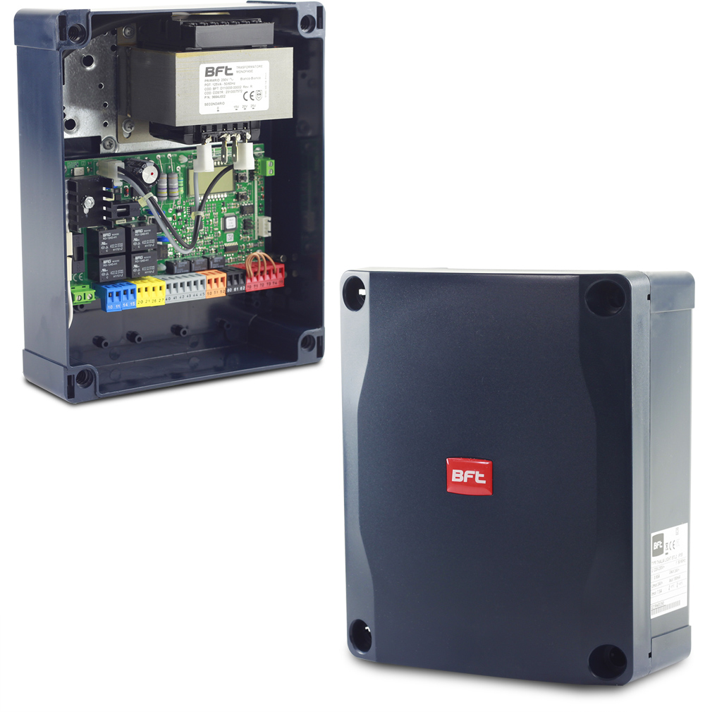 Centrala sterująca BFT THALIA LIGHT z wbudowanym radioodbiornikiemDzięki nowoczesnej centrali sterującej THALIA LIGHT wyposażonej w wyświetlacz LCD, instalacja i konfiguracja zestawu automatyki w maksymalnym stopniu ułatwia pracę montują. Dzięki dwóm trybom pracy możemy szybko zaprogramować niezbędne funkcje dosłownie w kilka minut uzyskując parametry idealnie dopasowane do wymagań klienta. Parametry techniczne: