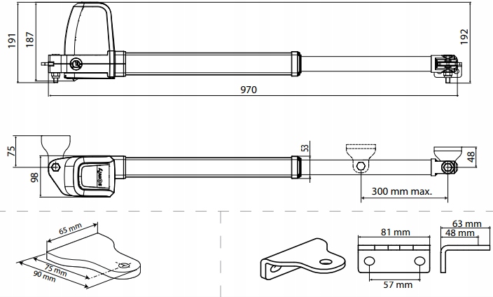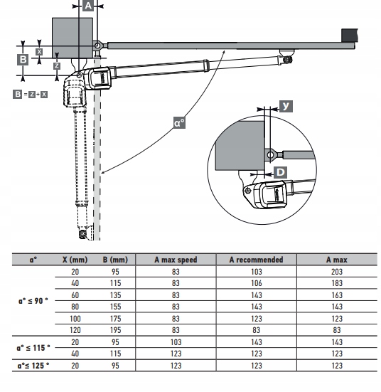 *Ważne. Maksymalna waga skrzydła zmniejsza się wraz ze wzrostem jego długości! Siłownik ATHOS AC A25 obsługuje skrzydła o długości 4 metry przy masie max. 350 kg. Skrzydło o długości do 2,5 metra może mieć masę nawet do 700 kg! |