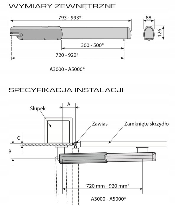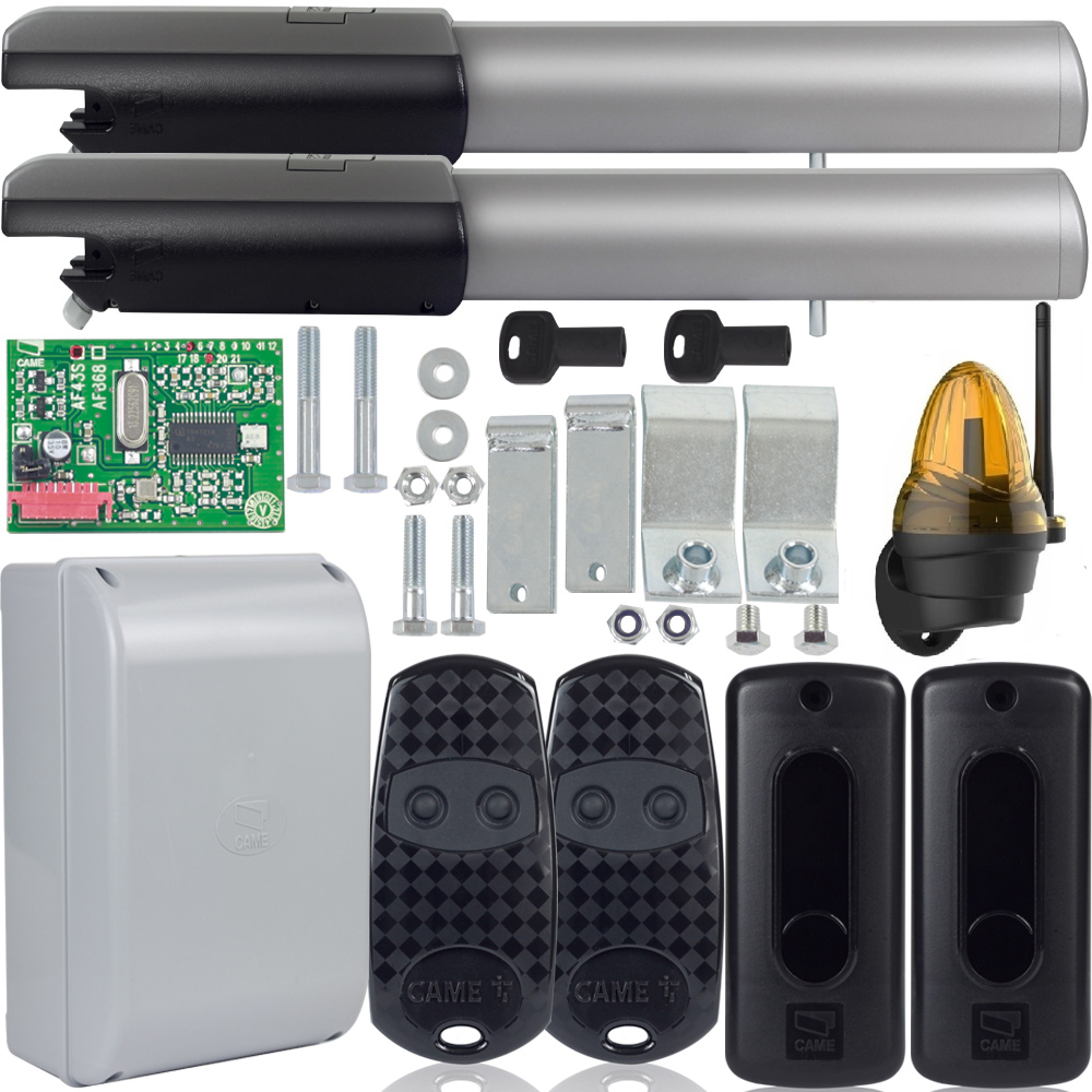 KOMPLETNY ZESTAW CAME ATI A5000A Z LAMPĄ LEDGotowym do samodzielnego montażu zestaw przeznaczonym do bram 2-skrzydłowych do 10 m (długość skrzydła 5 m). KOMPLETNY ZESTAW ZAWIERA: