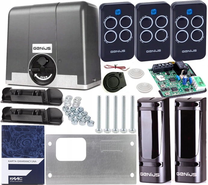 KOMPLETNY I GOTOWY DO MONTAŻU ZESTAW FAAC GENIUS BLIZZARD 500 DO BRAM PRZESUWNYCH O WADZE DO 500 KG. |
